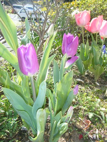 花壇にはチューリップが彩よく咲き、心癒してくれます。