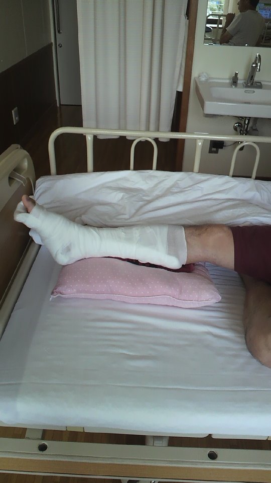 で、僕がどうなったかというと、そのまま救急車で市民HPへ搬送され案の定アキレス腱断裂と診断され入院となりました。今思えば普段の運動不足もですが、しっかりとした準備運動をしなかった事がケガの一因だと反省しきりです。