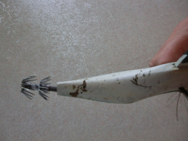 昨年は、このエギで2㎏UPのイカを何匹も釣りあげました。これが、証拠の烏賊の歯型です。