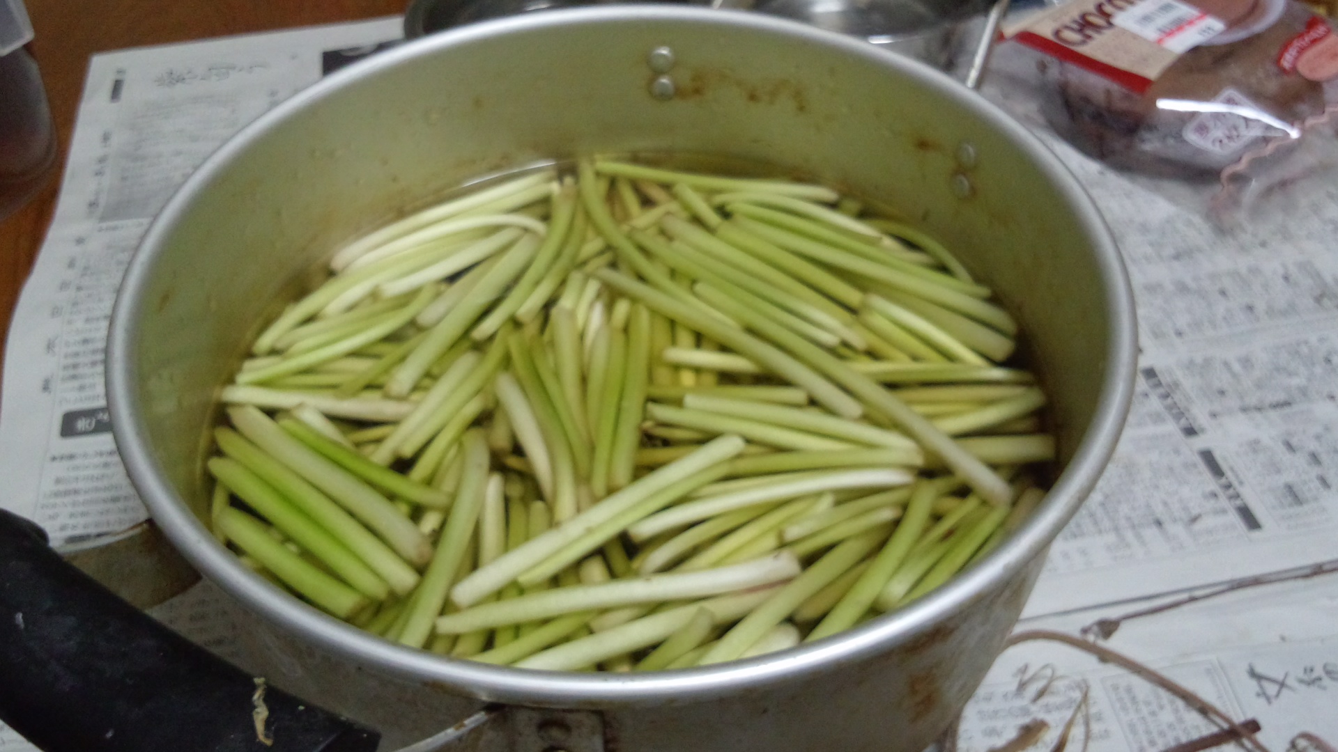 鍋いっぱいになる頃には手は真っ黒です。