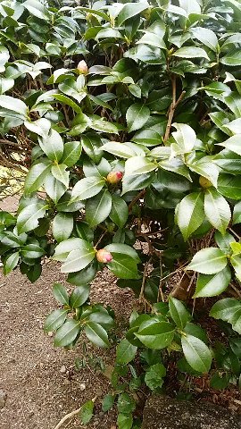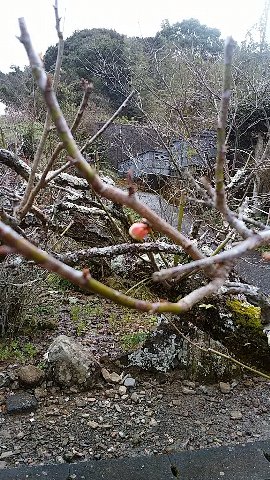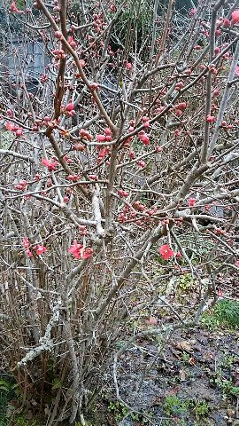 実家の庭にボケの花、梅の花、椿の花がふっくらと