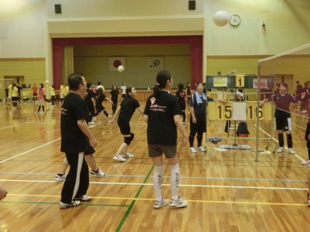 今回はフレンドリーにエントリーしました。各コート4チーム総当たりの予選を3試合 クラス分けして3試合 計6試合を戦いました。(21点先取。)