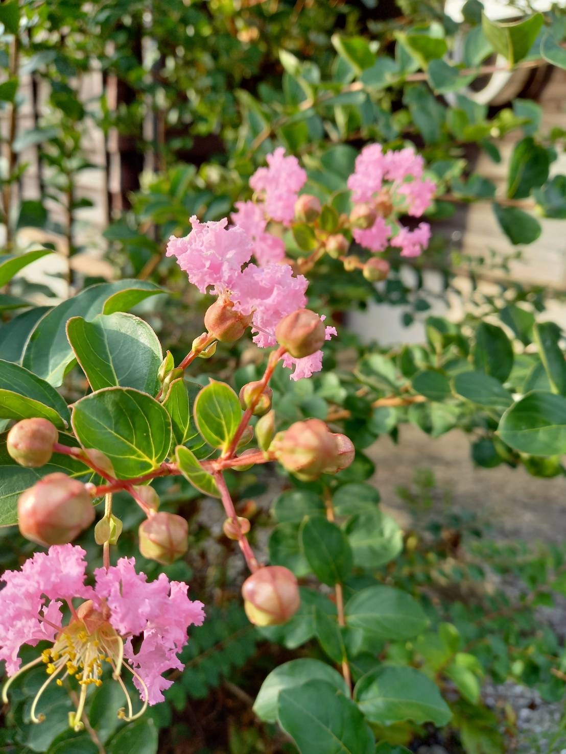 実家の庭にサルスベリの花がきれいに咲いています。