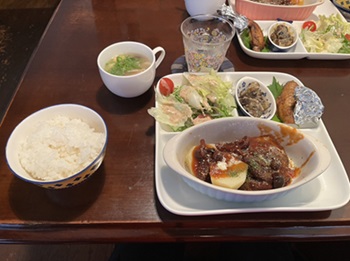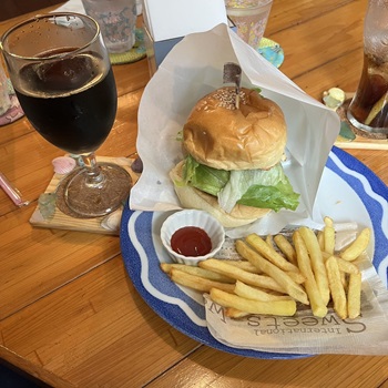 喫茶オリジンのサービスランチとチーズバーガーセット