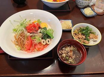 うしぶかBASEの週替わり定食とアイスコーヒー